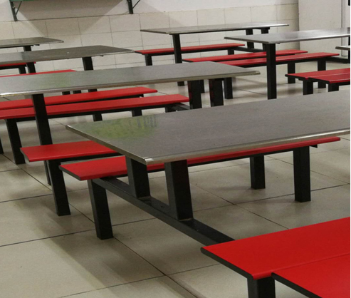 2、餐桌椅要求:四人座連體餐桌椅,不銹鋼桌面、防火板座椅(實(shí)物見照片)。