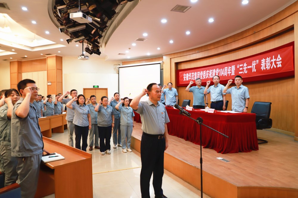 在中國(guó)共產(chǎn)黨成立104周年到來(lái)之際,6月30日,安徽華茂集團(tuán)黨委召開慶祝建黨104周年暨“三先一優(yōu)”表彰大會(huì),表彰先進(jìn),致敬榮光,賡續(xù)初心。集團(tuán)黨委書記、董事長(zhǎng)、總經(jīng)理倪俊龍帶領(lǐng)新黨員宣誓,老黨員重溫了入黨誓詞。在鏗鏘有力的誓詞聲中,黨員同志們更加堅(jiān)定了入黨初心和奮斗使命。公司領(lǐng)導(dǎo)、各黨總支(直屬黨支部)主要負(fù)責(zé)同志、基層黨務(wù)工作者和黨員代表等參加了會(huì)議。